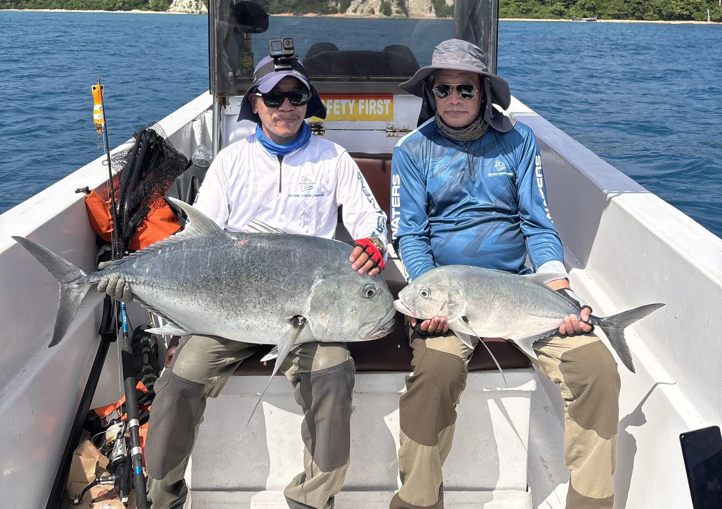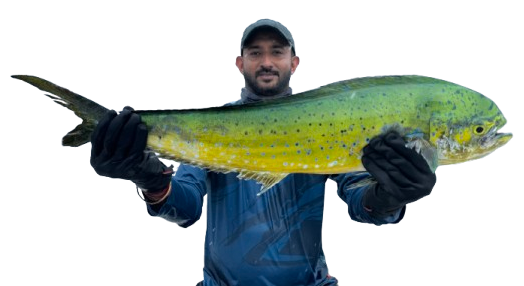 Popular catches include Giant Trevally (GT), Dogtooth Tuna, Yellowfin Tuna, Barracuda, Marlin, Sailfish, Snapper, Grouper, Dorado (Mahi-Mahi), Spanish Mackerel, and Wahoo, among others